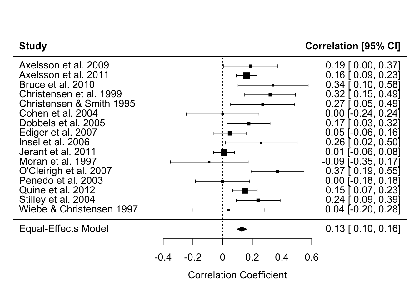 Note equivalent estimates of the meta-analysis effect size (r = .13).
