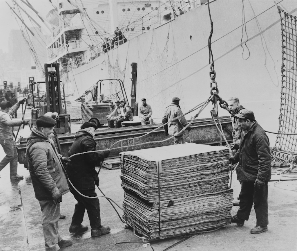 A useful analogy here is that, in the past, cargo ships carried irregularly sized cargo. Before 1956, it would take a week or more to load or unload a large cargo ship, at an average of just over one tonne of cargo per hour. Because of this, ships usually spent 50% of their life being loaded and unloaded.