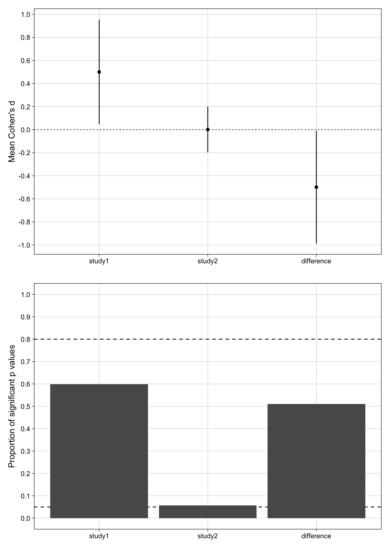 # geom_text(aes(x = "difference", y = 1.1, label = paste("Population\nCohen's d =", study_2_population_cohens_d - study_1_population_cohens_d))) +