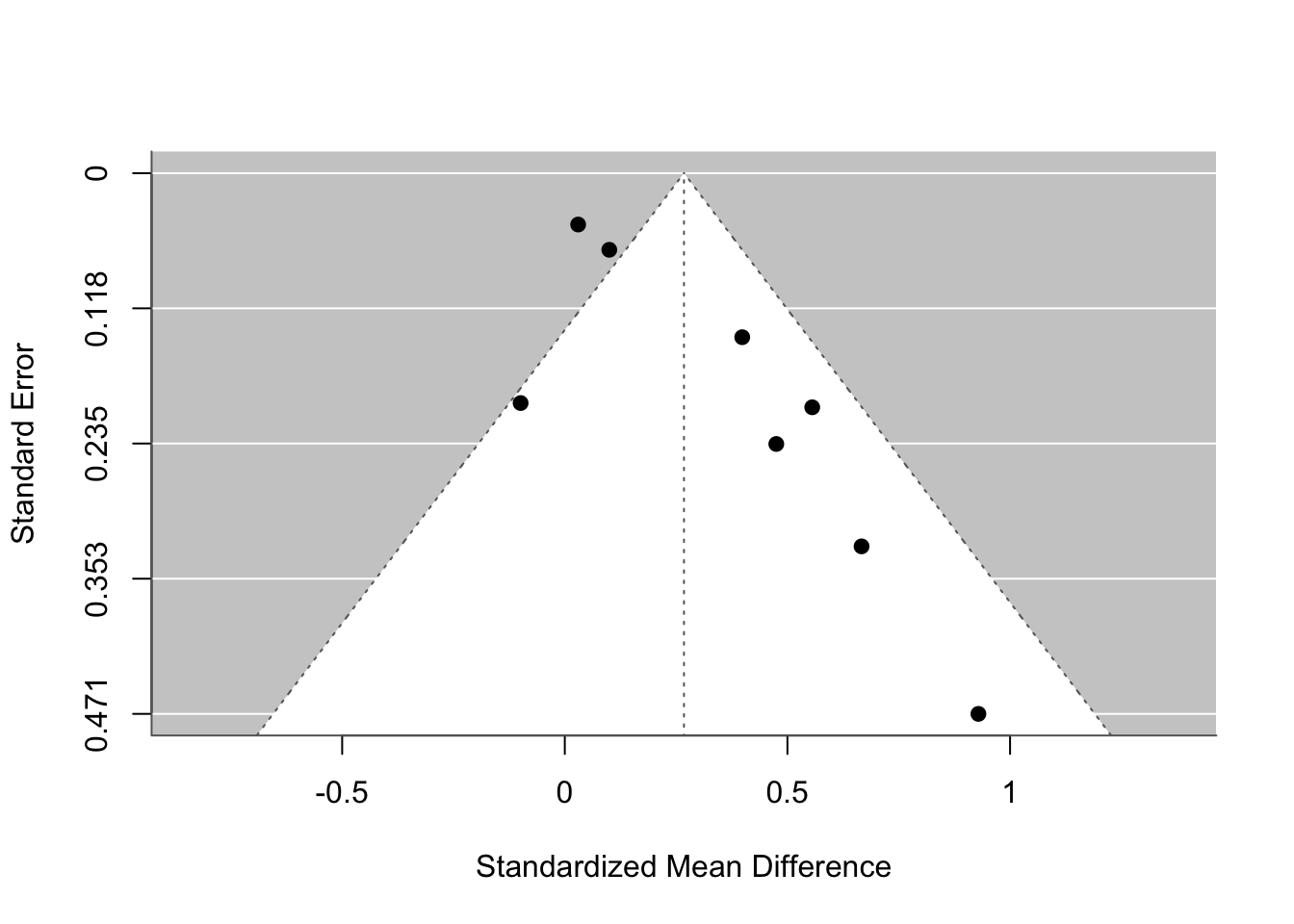 | Study 8 | 0.03 | 0.04 | 0.95 | -0.06 | 0.12 | 0.67 | 0.5025194 | 499.94 | Meta-analysis using ‘metafor’ |